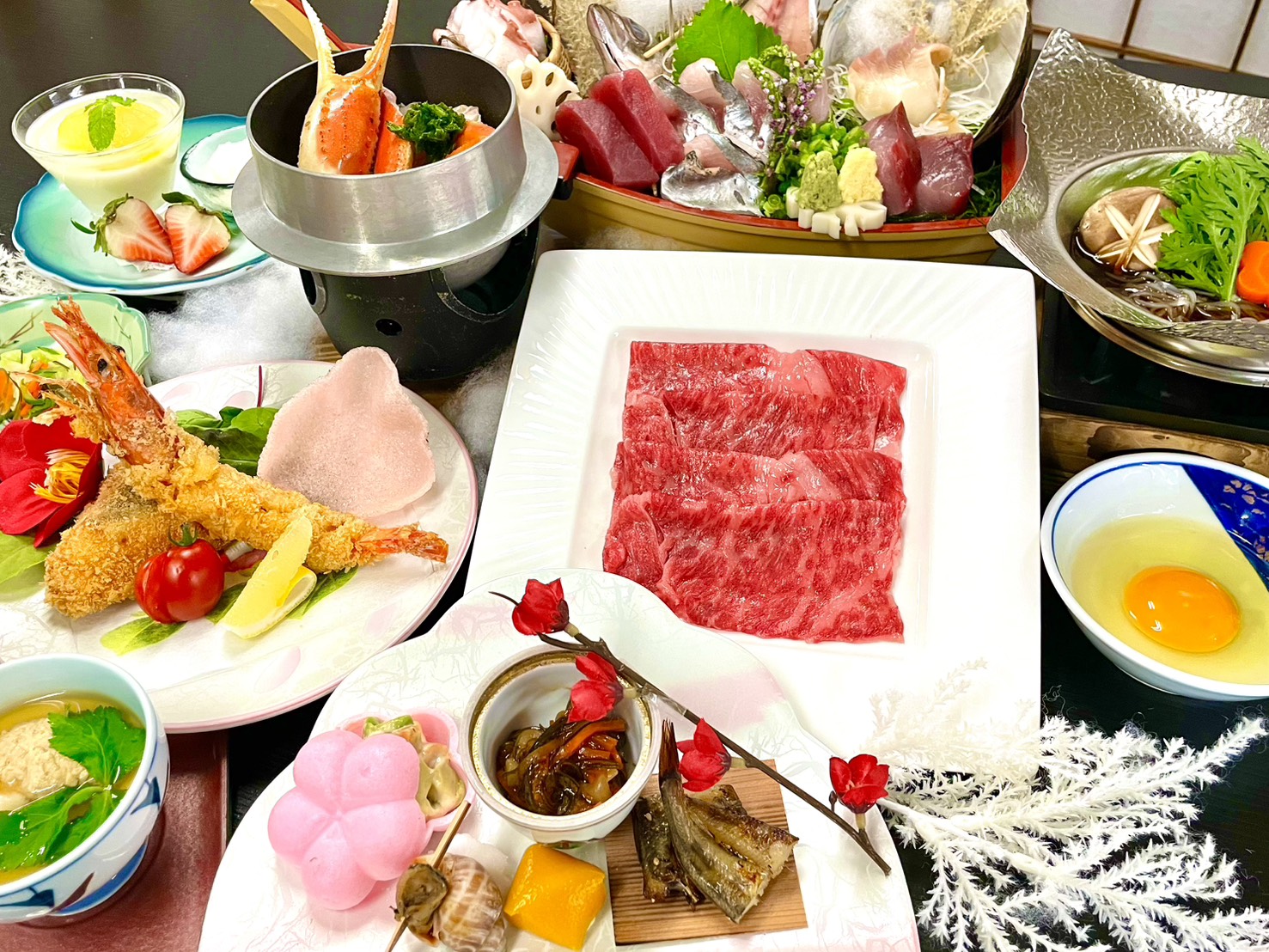 旬を味わう料理長特選会席「福島牛すき鍋プラン」の一例です。